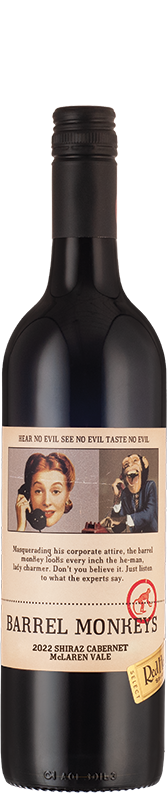 A testament to its exceptional grapes and winemakers, Nat McMurtrie and Steve Grimley, Barrel Monkeys is big and bold, yet vibrant and fresh. Beautifully fruit forward and approachable. It's brimming with bold blackberry, ripe cassis and subtle milk chocolate notes, plus gentle spice thanks to roughly 16 months in French oak. Smooth tannins and a plush mouthfeel contribute to its long, enjoyable finish.