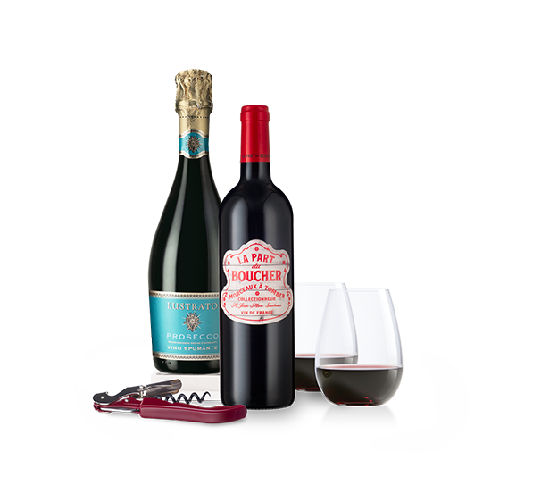 A perfect way to celebrate loved ones and the better weather, this gift set includes fine Italian fizz and a beloved red blend, plus a corkscrew and stemless glasses to help them take the party outside.