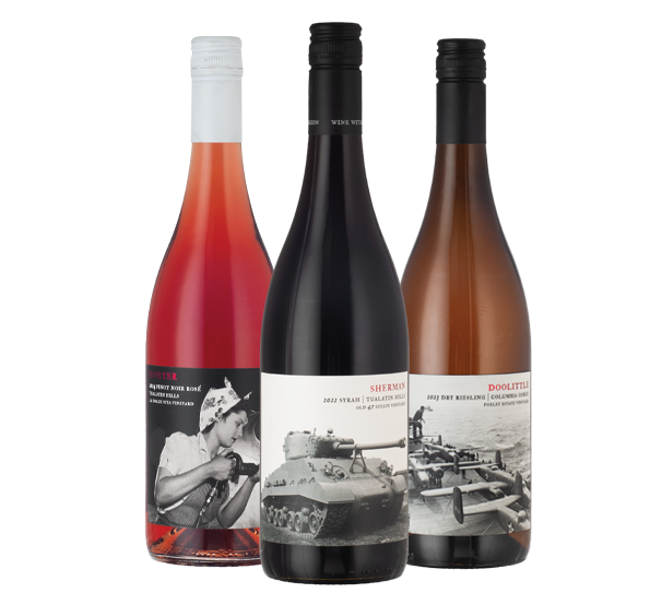 Founded by three combat vets, the Dauntless Wine Cø. supports veterans through its small-production, high-quality wines from Oregon & Washington. Enjoy their dry Doolittle Riesling, refreshing Riveter Rosé and sumptuous Sherman Syrah and save $10.